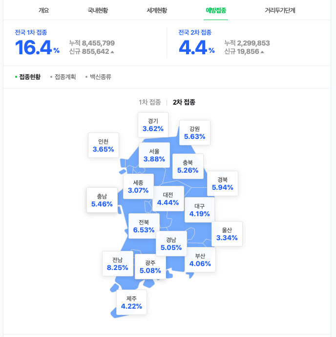 독일은 벌써 21.9%의 시민이 2차까지 모두 접종을 완료했다고 하네요. 전세계로는 5.9%고, 한국은 현재 4.4%프로라고 하니 엄청 빠른 속도로 백신을 맞고 있는 것으로 보여져요.