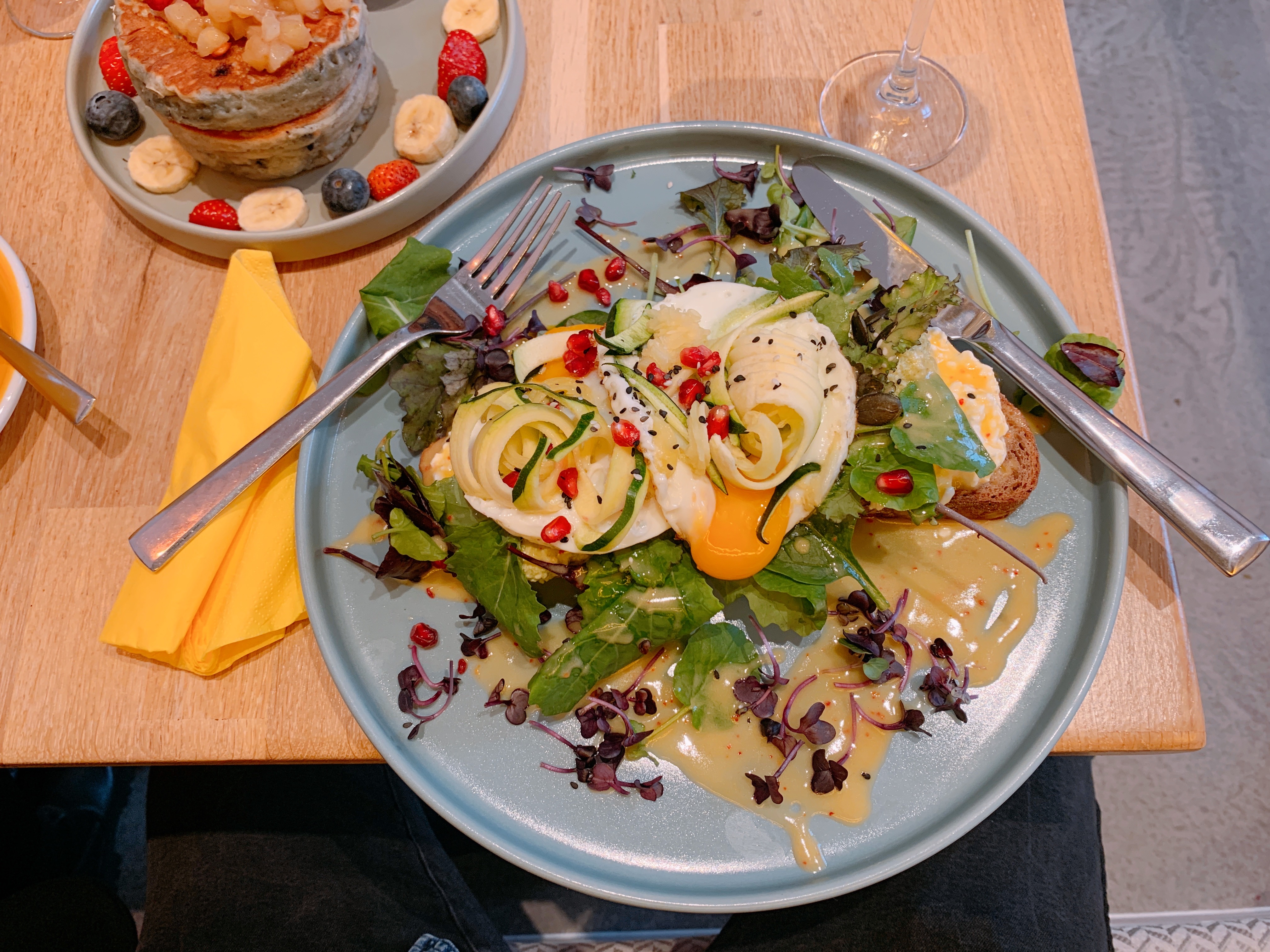 브런치 레스토랑으로 이미 엄청 유명하다고 해요. 저희는 다양하게 주문을 시켜보고 싶어서 여러 메뉴를 주문했는데요. 진짜 하나같이 다 맛있었어요. 아무래도 가장 유명한 건 두툼한 팬케이크 같았어요. 저는 원래 베이글을 좋아해서 베이글 메뉴를 주문했는데, 정말 맛있었고요. 남자 친구는 뭔가 푸짐한 걸 원해서 그것도 추가로 주문했죠.
